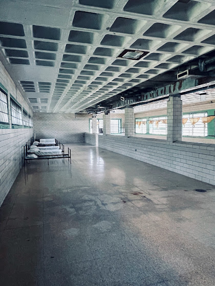 While at the asylum it is hard to shake the feeling of someone looking over your shoulder. The endless corridors of chipping pastel paint did little in the way of easing this feelin. Rooms still furnished with steel frame beds, or rocking chairs facing the corners. The wind whistling through the windows where local kids have thrown rocks through. While this building has seen its fair share of better days, the same can not be said about those who lived within these walls. This asylum was one of the first in the USA to start the controversial procedure or lobotomies, shock therapy and hydro therapy. All have since been deemed a violation of human rights. This is not the end of the dark past of this asylum. In these walls many people died, so much so that in the acers behind the property, there used to be a grave yard. Filled with wooden stakes that only display a number for those who spent their last moments in the asylum.